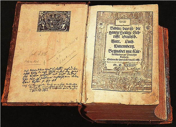 Martin Luther“The just/righteous shall live by faith” (Romans 1:17; Galatians 3:11; Hebrews 10:38). We know of Martin Luther (the copy of the Bible he owned is pictured to the right) as the great reformer and the iconic figure instrumental at the forefront of the reformation that led to the protestant movement. Luther was a German Catholic priest who could not abide the drifting of Roman Catholicism that included such things as the selling of indulgences. He had 95 issues with his own fellowship. He was severely persecuted by the church for his candor.