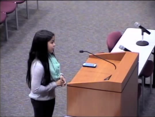 Jordan Wooley, a seventh grade student at West Memorial Junior High School in the Katy Independent School District, testified at a school board meeting last night about an assignment in her reading class that caused a serious controversy, and expressed frustration about her teacher’s atheist indoctrination.